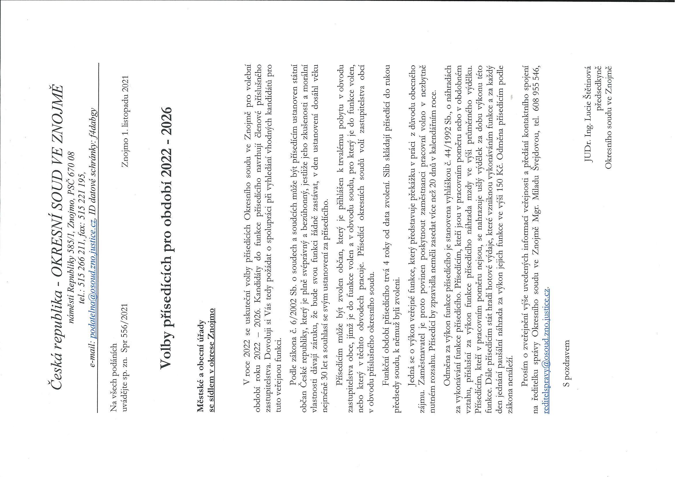 Volby přísedících Okresního soudu ve Znojmě pro obodbí 2022 - 2026