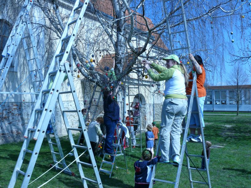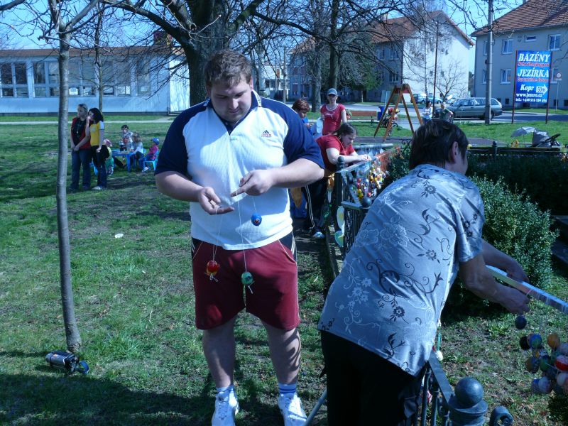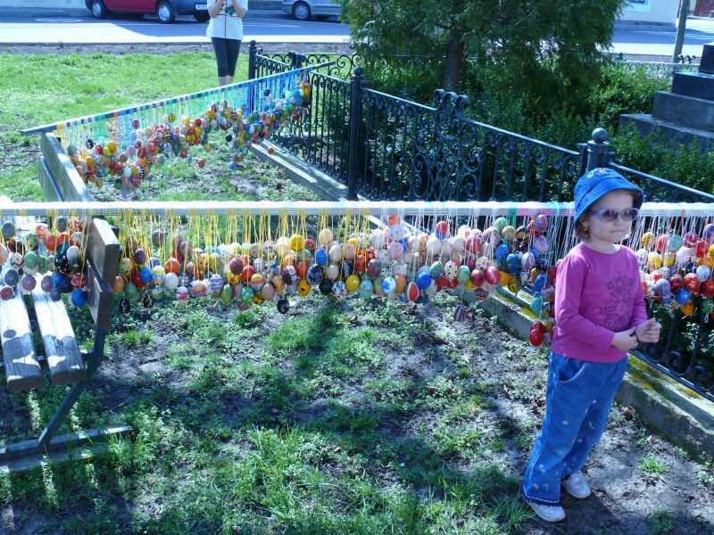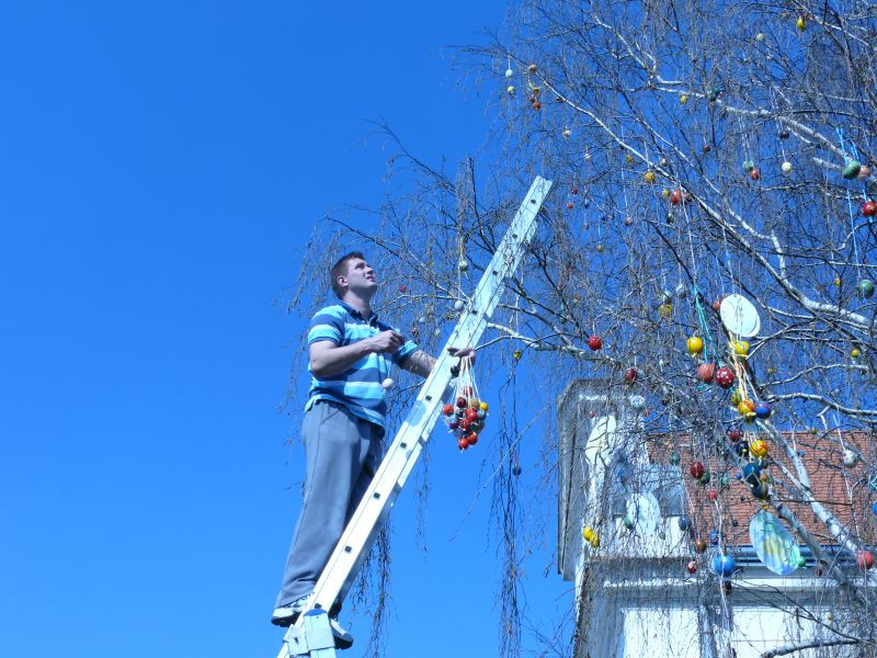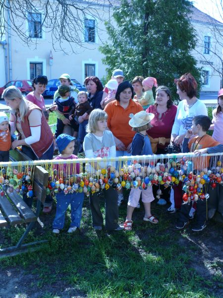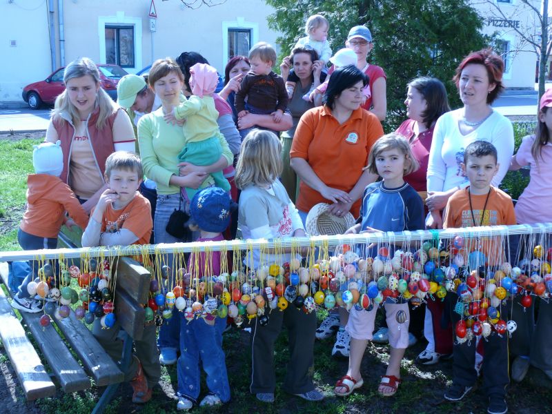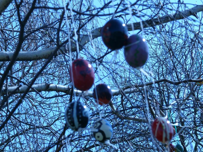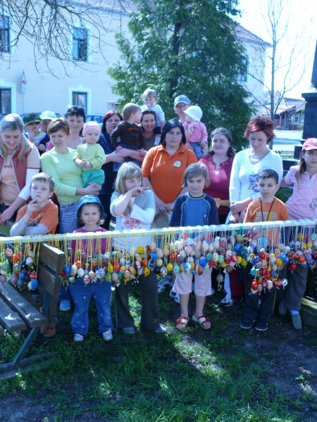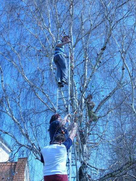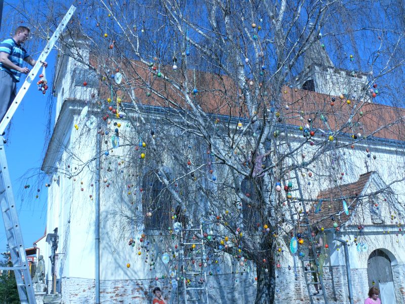 Sdružení maminek v sobotu 4.4.2009 věšelo 2.246 kraslic na "Skořápkovník" u kostela Sv. Markéty ve Chvalovicích.