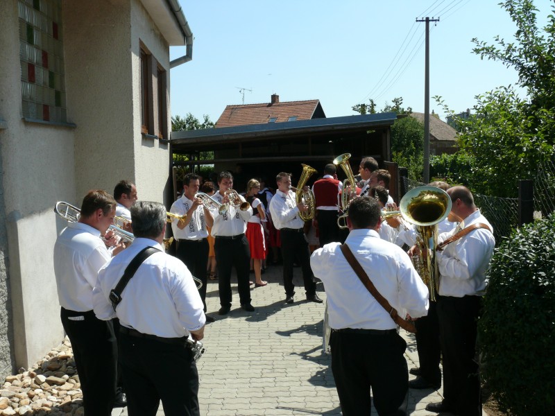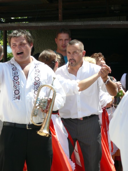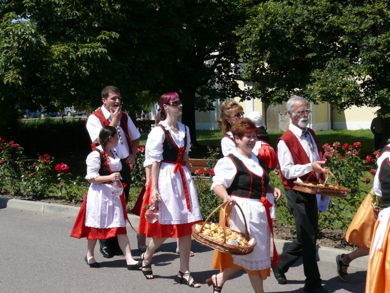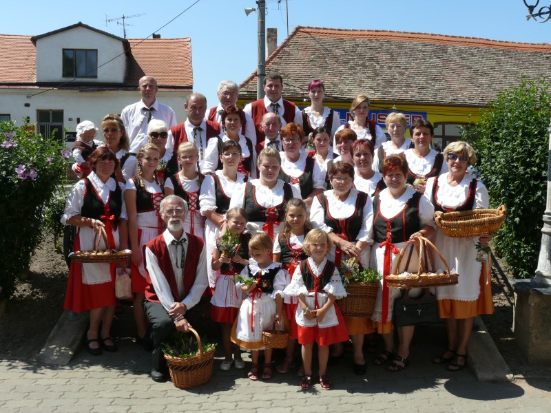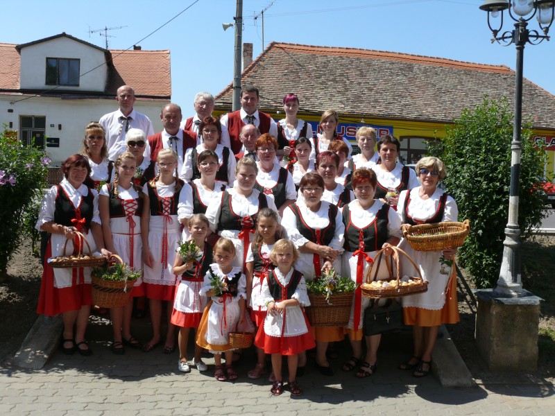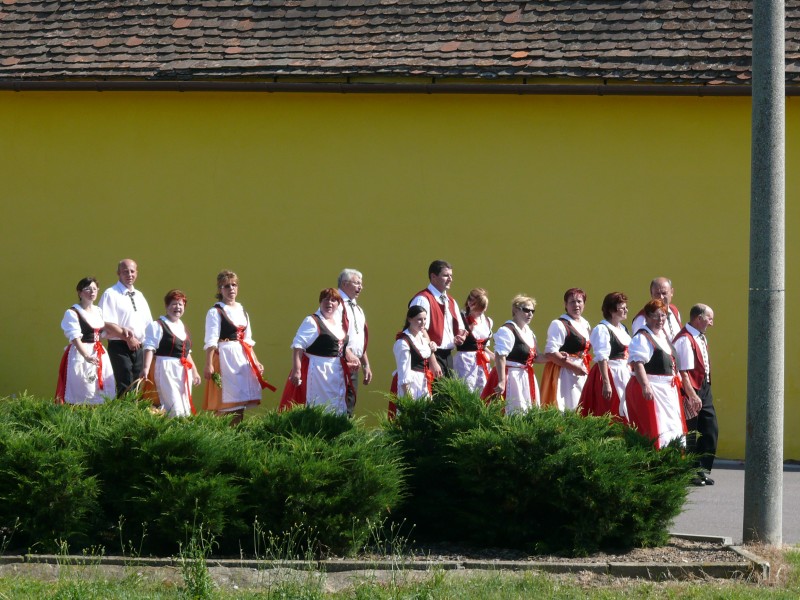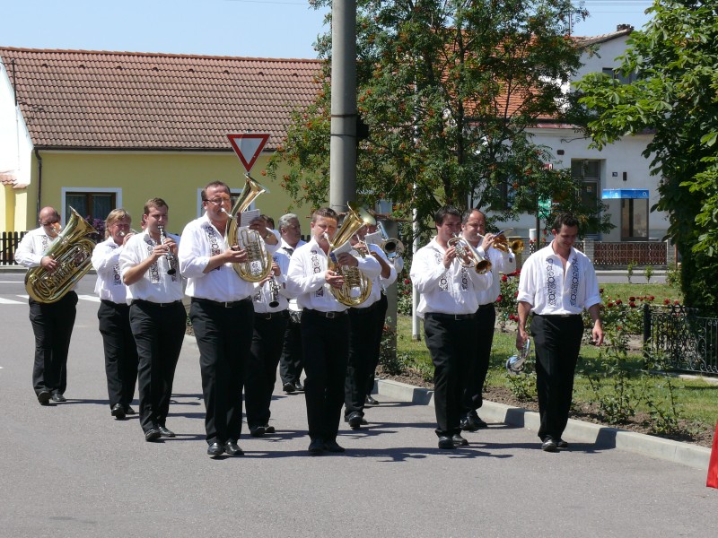 V podvečer pouťový program pokračoval ve sportovním areálu taneční zábavou, kterou novým předtančením uvedli Naši sousedé. Dobrou náladu si zúčastnění, kteří mohli vyzkoušet nový taneční parket, nenechali pokazit ani deštěm, ani hrozící bouřkou. Večer zpestřilo 9 kankánových tanečnic.