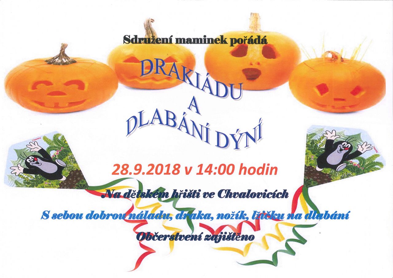 Sdružení maminek pořádá dne 28.9.2018 od 14.00 hodin - Drakiádu a dlabání dýní